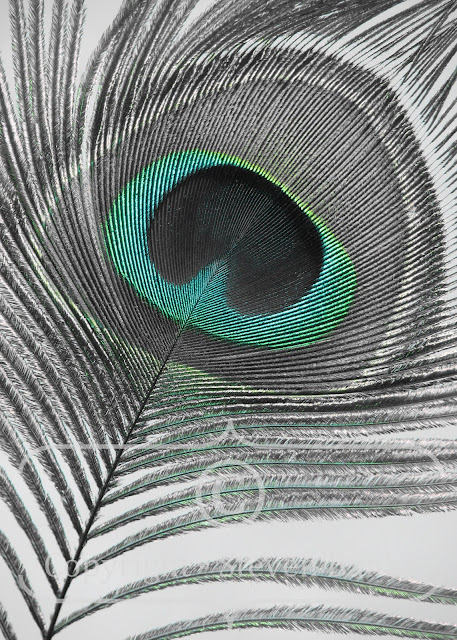 I've isolated the green in the feather for an interesting contrast to the grays of the surrounding feather. This view also reveals the pattern of the feather a bit more.